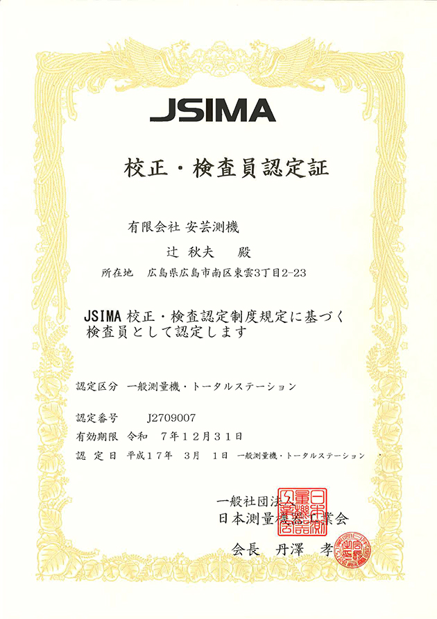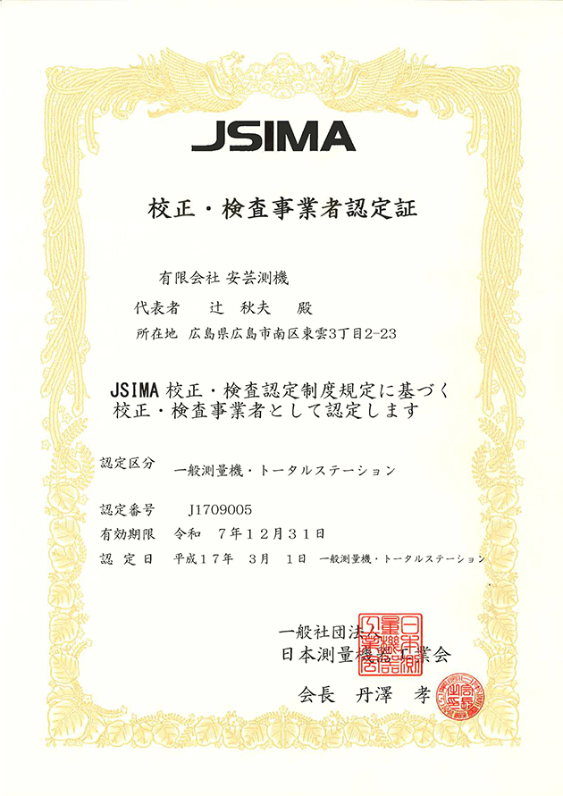 各メーカーの保守サービス・修理・点検・調整を行っております。 弊社は(一社)測量機器工業会 -JSIMA- の校正・検査認定事業者です。 安心してお申し付けください。
